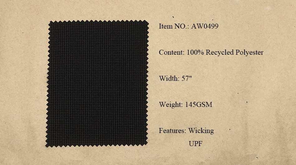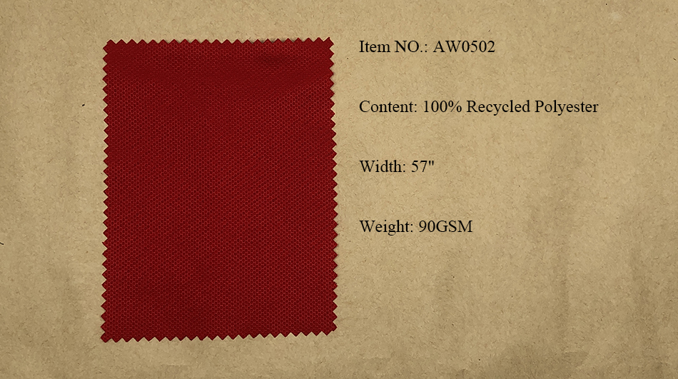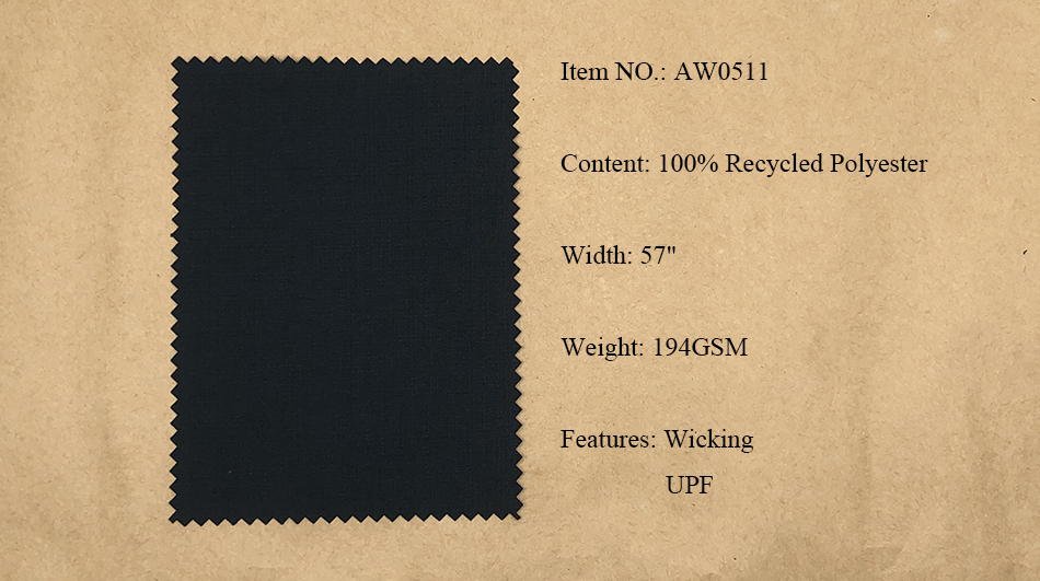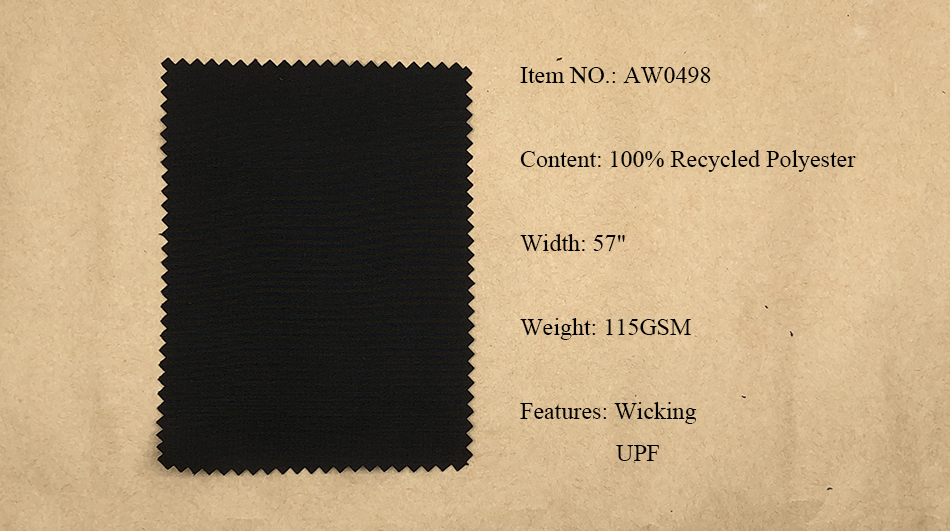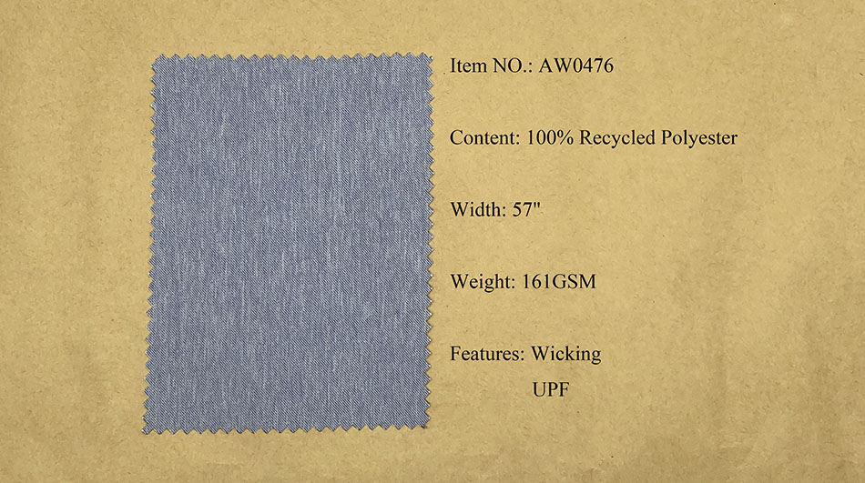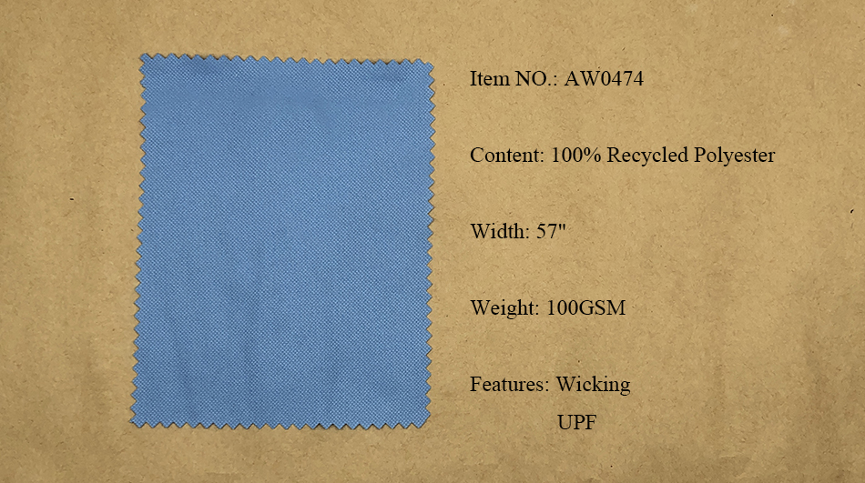 Recycled Polyester Fabrics: Pongee, Ribstop, Twill, Cationic, Serge, Mesh, Trucker Mesh, Dobby, Pique, Sheeting, Jersey, Interlock.