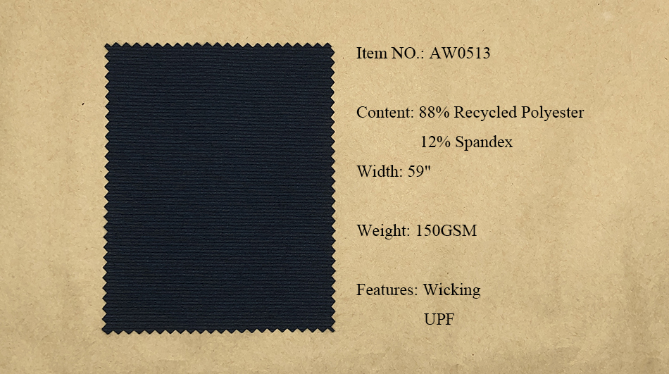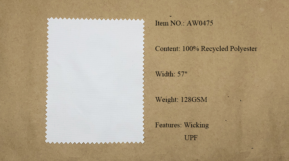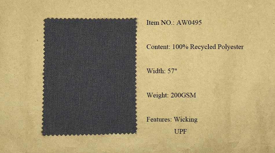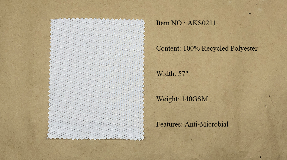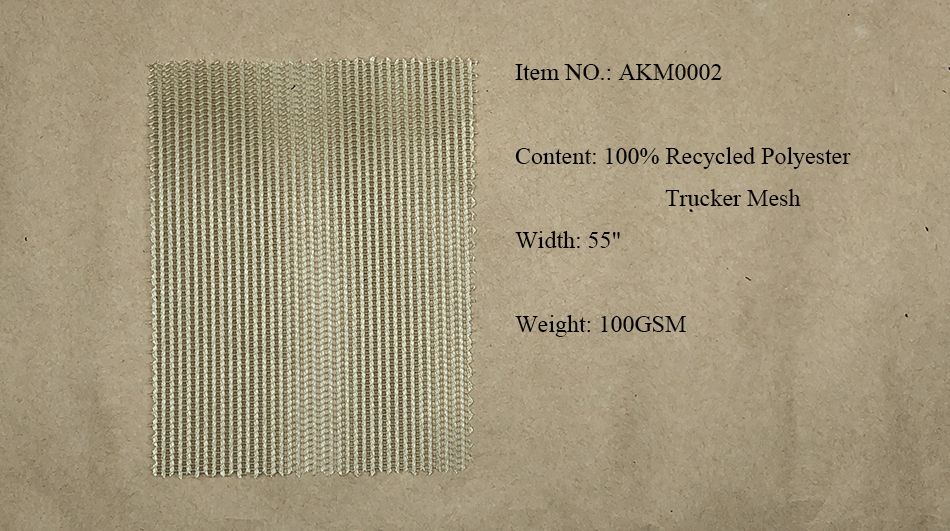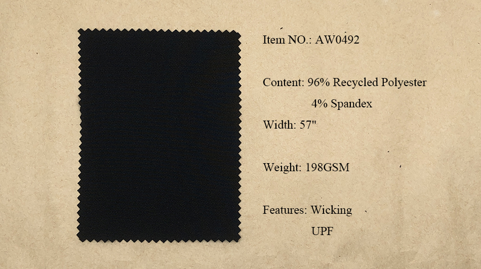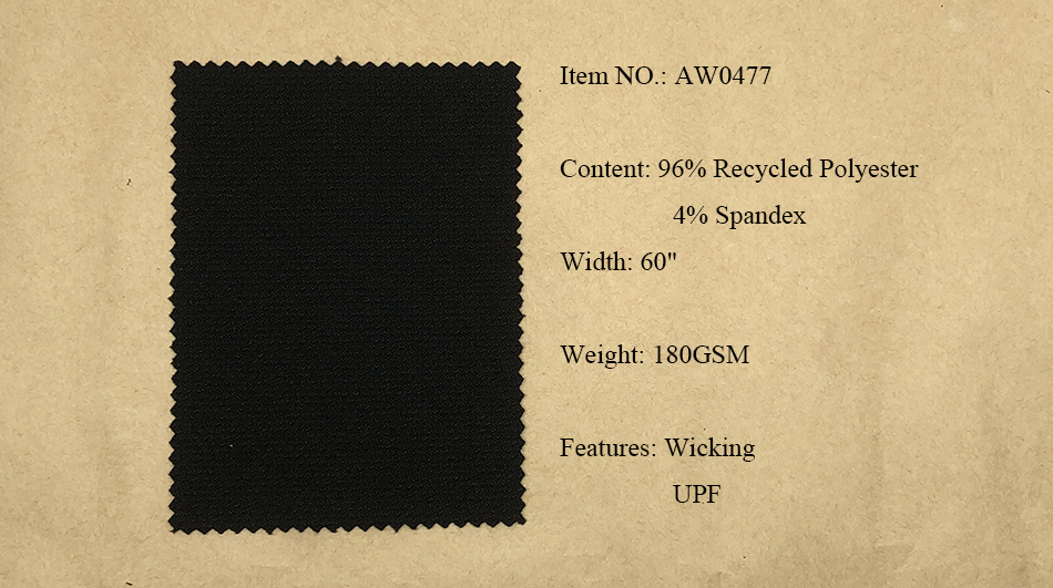 Recycled Polyester Fabrics: Pongee, Ribstop, Twill, Cationic, Serge, Mesh, Trucker Mesh, Dobby, Pique, Sheeting, Jersey, Interlock.