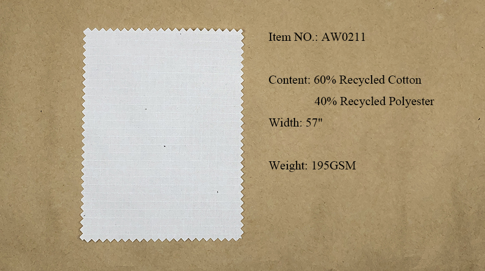 Recycled Cotton Fabrics: Twill, Canvas, Ribstop, Herringbone.